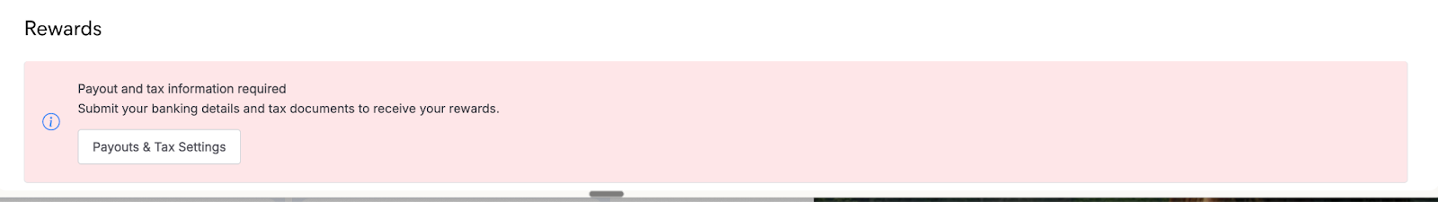 Tip: Set up your payout and tax details now so you’re ready to receive rewards without delay.