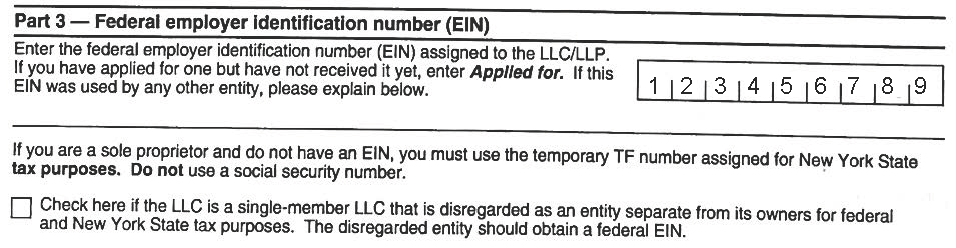 3. Enter your 9 digit EIN (no dash) in the box in the first section of Part 3. If your EIN has been applied for but not received, enter Applied for on the line below. Do not check the box below.