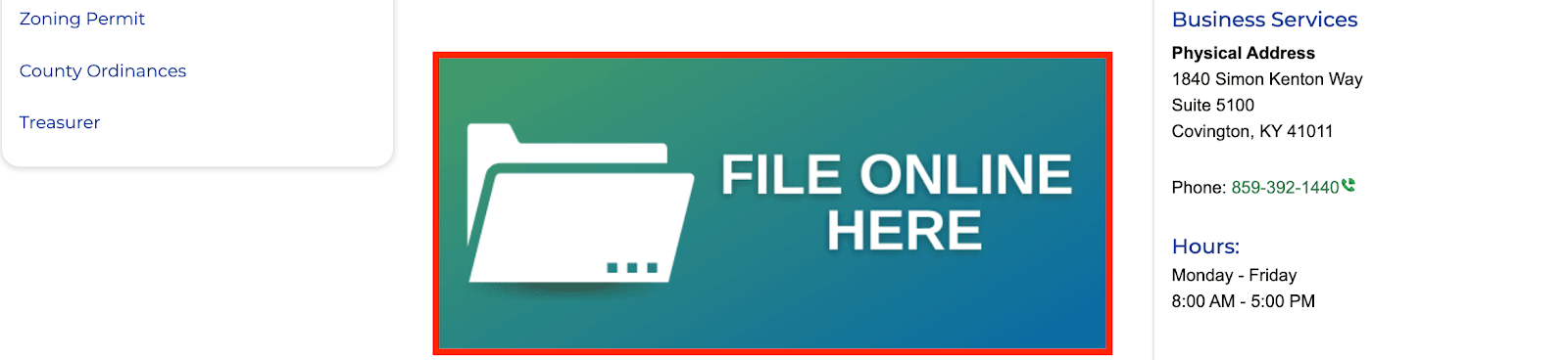 Visit Kenton County Website and click "Business Services" on the main page.