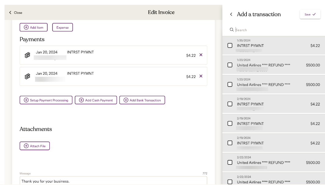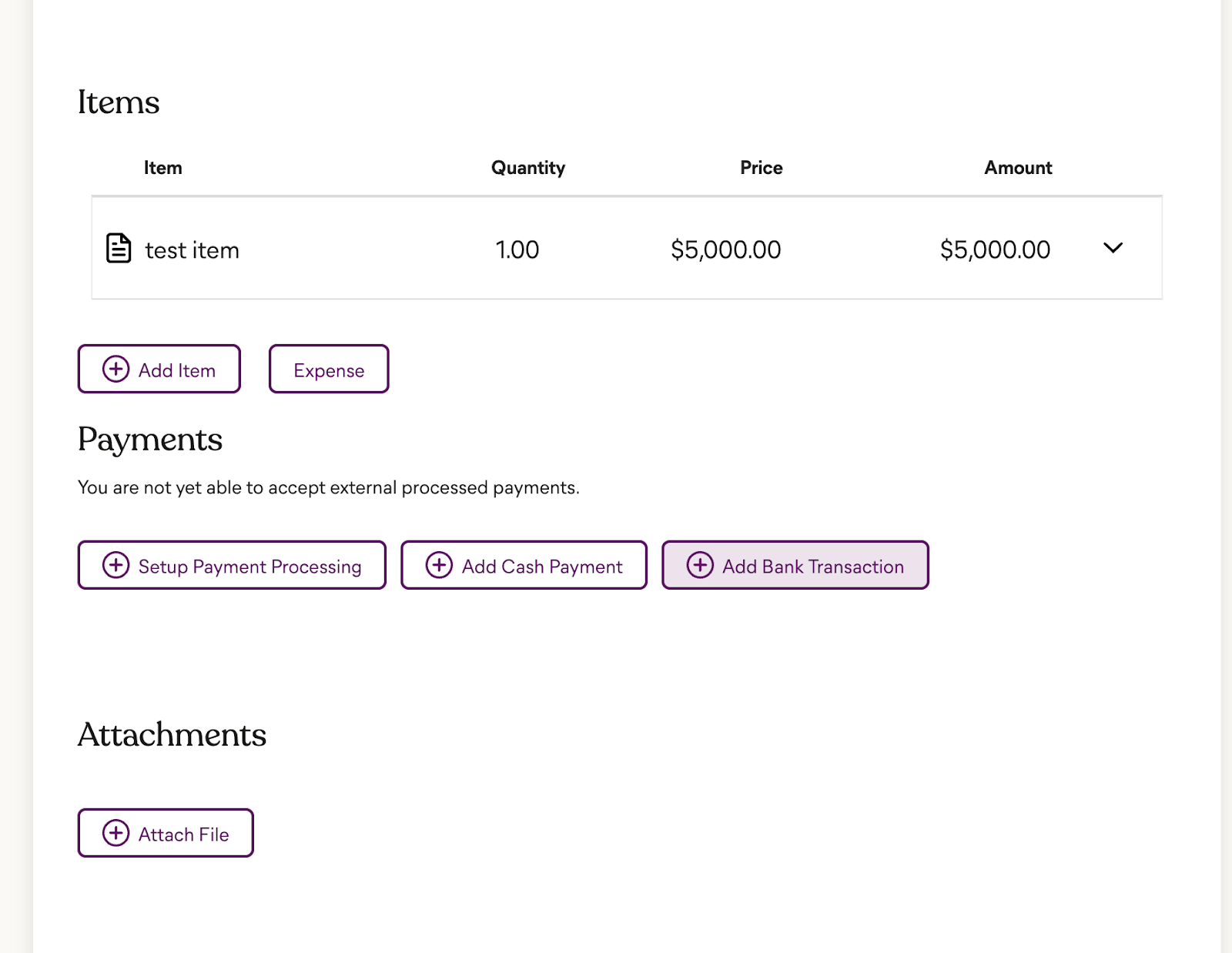 - Under All Transactions, locate the transaction you wish to add a receipt or invoice for and click the up arrow under Attachments