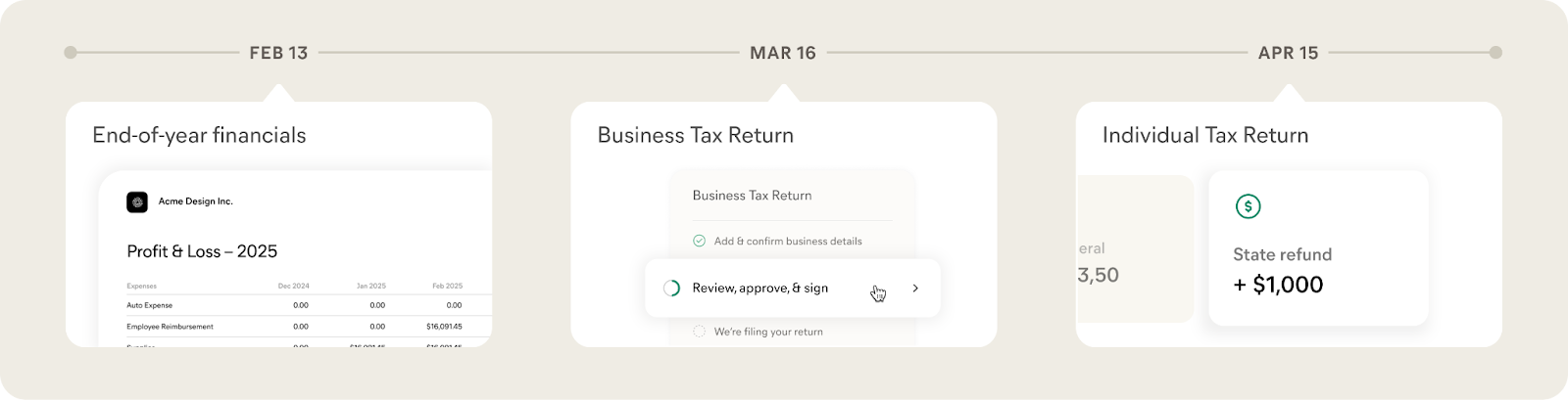 | Feb 13, 2026 | Approve Financials & Submit Organizer | Finalize your 2025 activity: Approve your Profit & Loss/Balance Sheet and submit your Business Organizer.