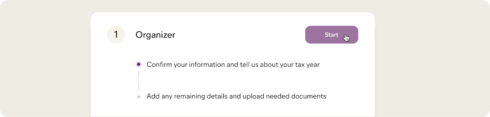 The first step is answering a few questions in your dashboard so we can tailor the right individual tax return package for you & your household.